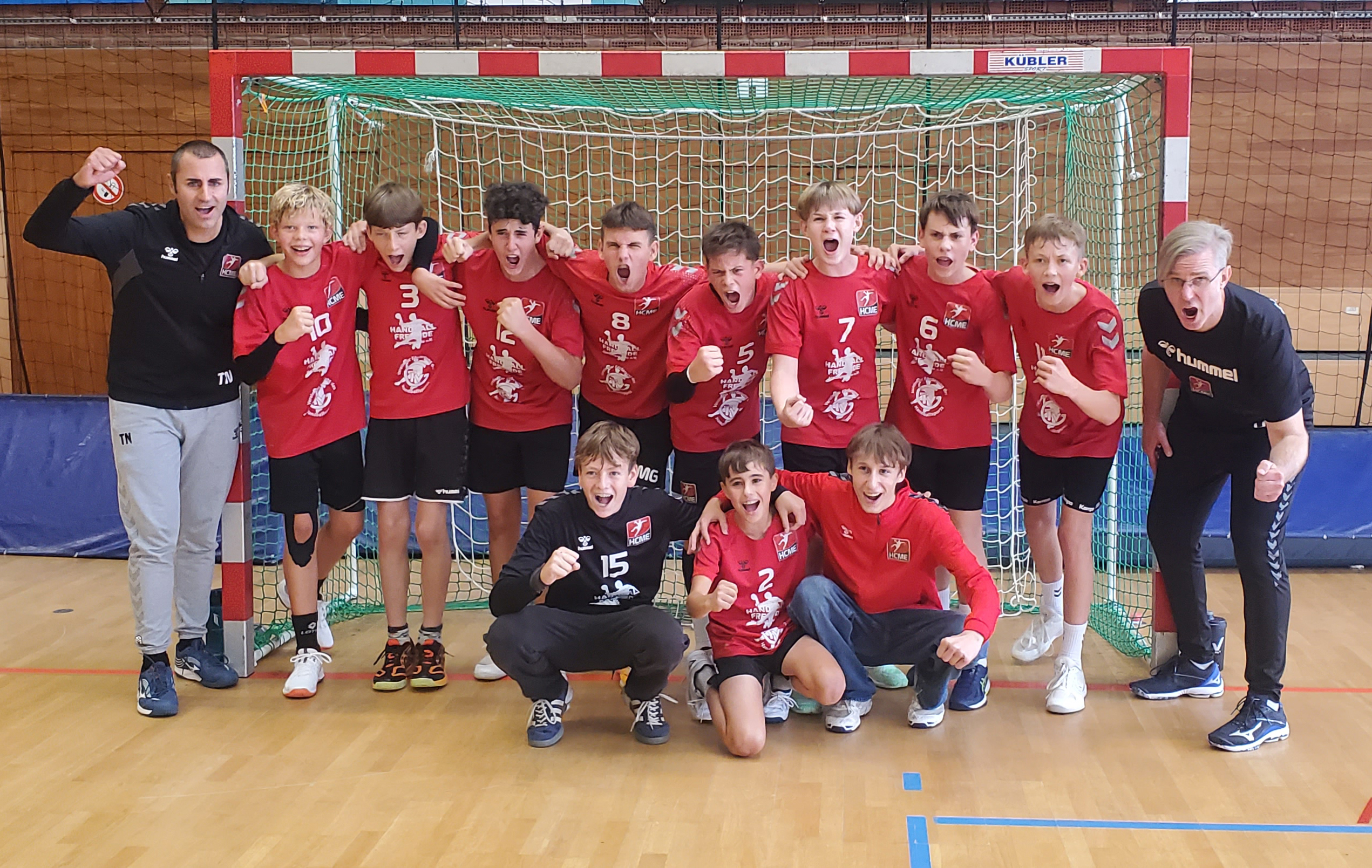 Beide Mannschaften legten den Fokus zunächst auf die Defensive. Die Gastgeber agierten mit einer kompakten 6:0-Abwehr, während unsere HCME-Jungs mit einer offensiven 4:2-Deckung dagegenhielten, die phasenweise sogar in eine doppelte Manndeckung überging.